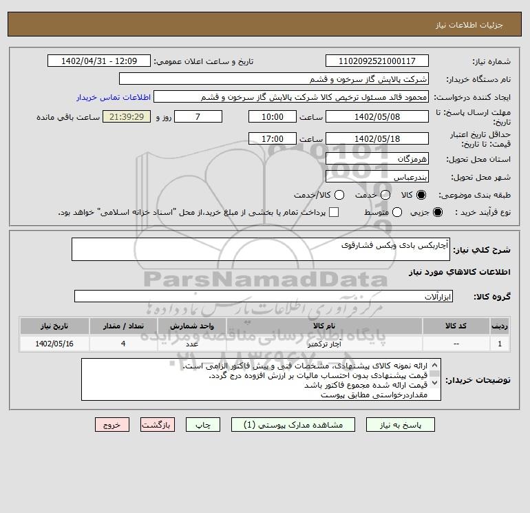 نام دستگاه خریدار:شرکت پالایش گاز سرخون و قشم