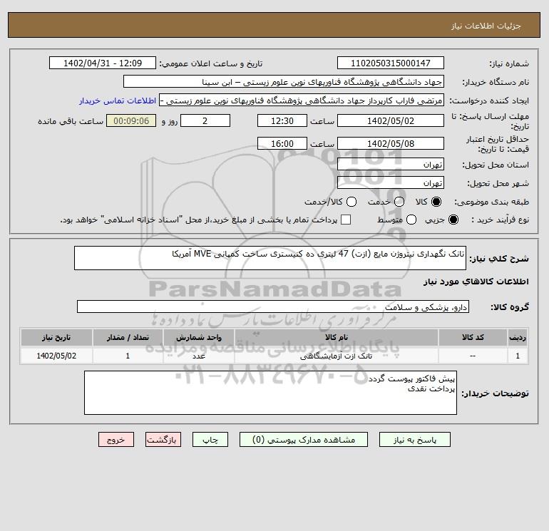 نام دستگاه خریدار:جهاد دانشگاهی پژوهشگاه فناوریهای نوین علوم زیستی – ابن سینا