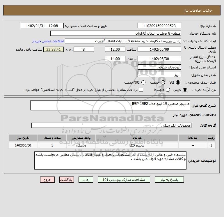 شرح کلی نیاز: مانتیتور صنعتی 19 اینچ مدل IFSP-19E2
