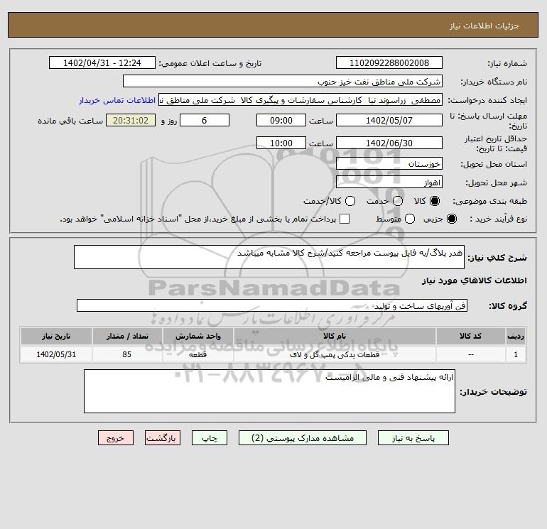 شرح کلی نیاز: هدر پلاگ/به فایل پیوست مراجعه کنید/شرح کالا مشابه میباشد
