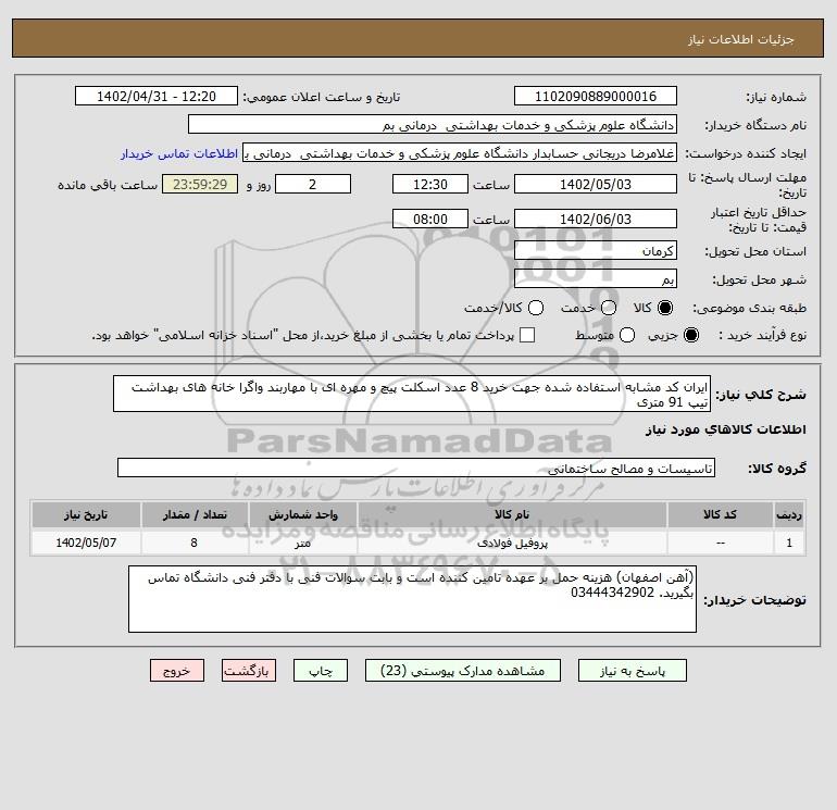 نام دستگاه خریدار:دانشگاه علوم پزشکی و خدمات بهداشتی درمانی بم