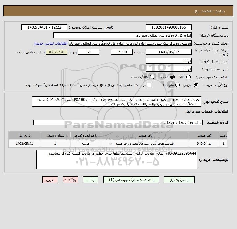 نام دستگاه خریدار:اداره کل فرودگاه بین المللی مهراباد