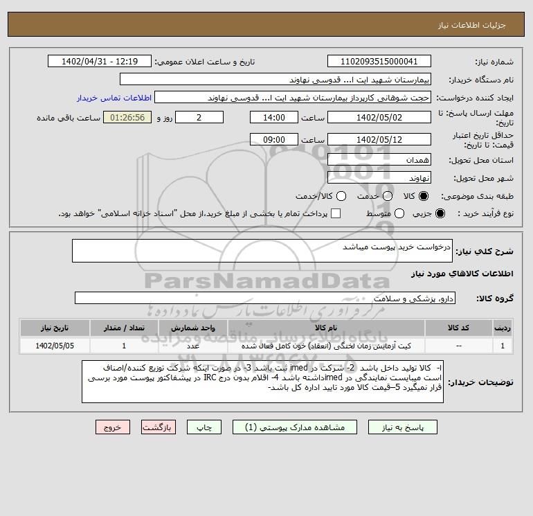نام دستگاه خریدار:بیمارستان شهید ایت ا... قدوسی نهاوند