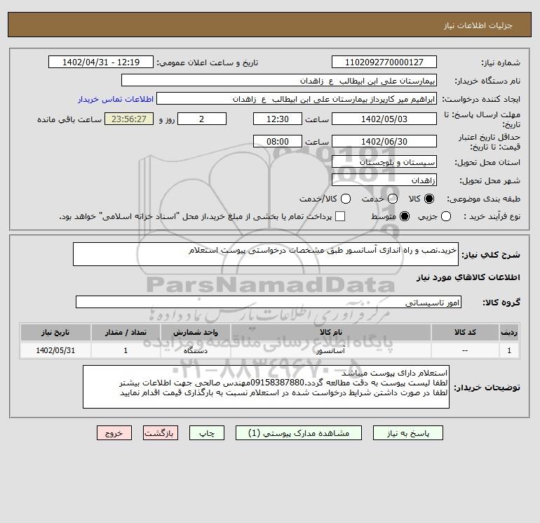 نام دستگاه خریدار:بیمارستان علی ابن ابیطالب ع زاهدان
