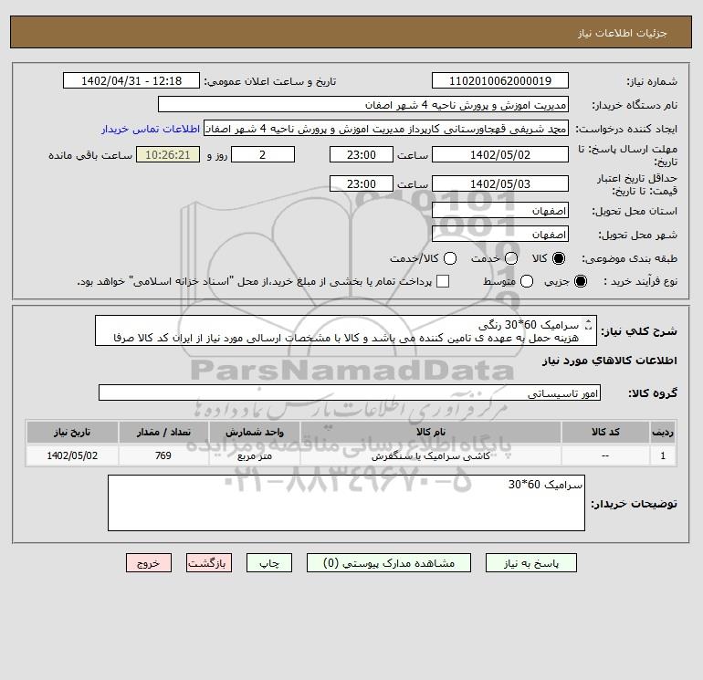 نام دستگاه خریدار:مدیریت اموزش و پرورش ناحیه 4 شهر اصفان