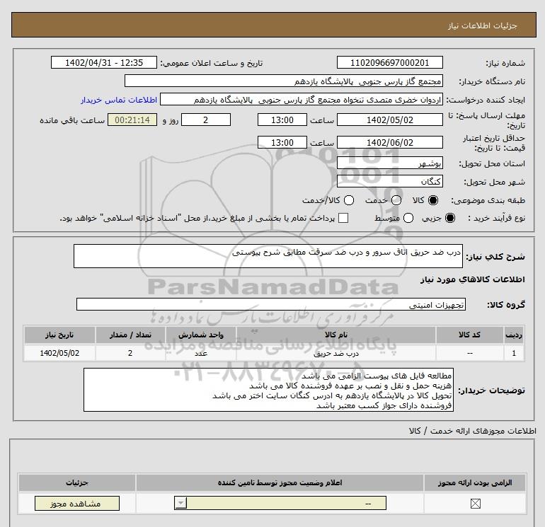 استعلام درب ضد حریق اتاق سرور و درب ضد سرقت مطابق شرح پیوستی, استعلام درب ضد حریق اتاق سرور و درب ضد سرقت مطابق شرح پیوستی