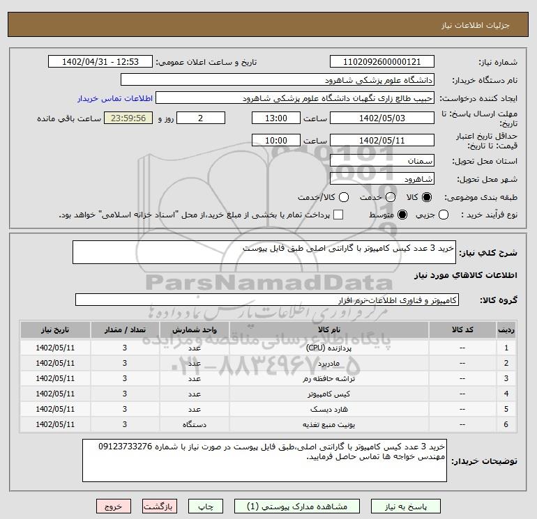 شرح کلی نیاز: خرید 3 عدد کیس کامپیوتر با گارانتی اصلی طبق فایل پیوست