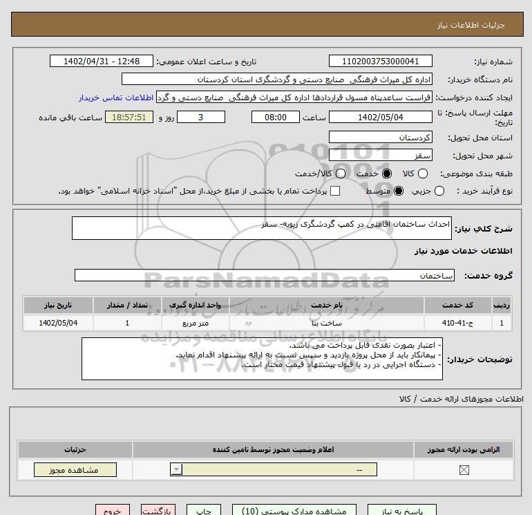 شرح کلی نیاز: احداث ساختمان اقامتی در کمپ گردشگری زیویه- سقز