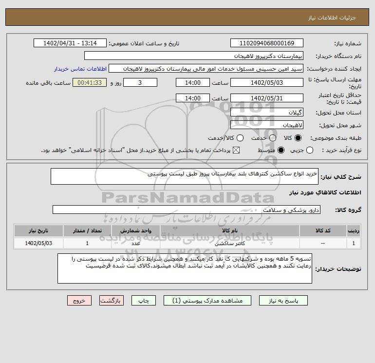شرح کلی نیاز: خرید انواع ساکشن کتترهای بلند بیمارستان پیروز طبق لیست پیوستی