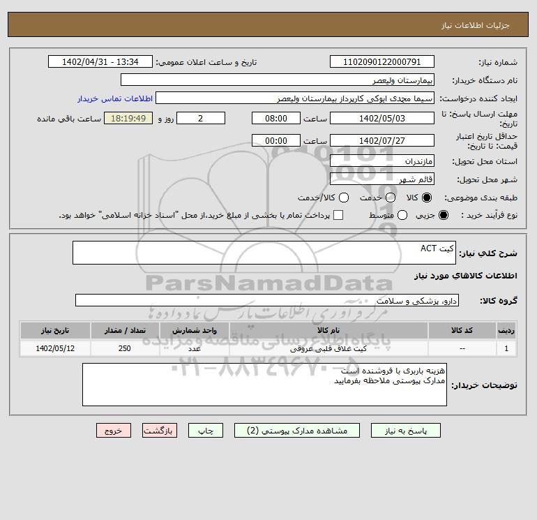 شرح کلی نیاز: کیت ACT