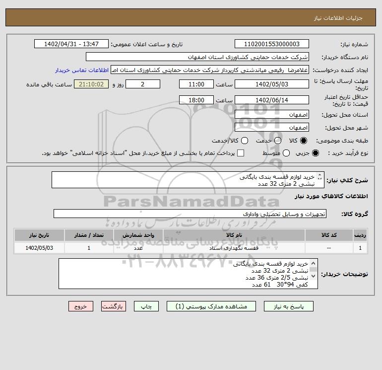 | 1 | -- | قفسه نگهداری اسناد | عدد | 1 | 1402/05/03 |