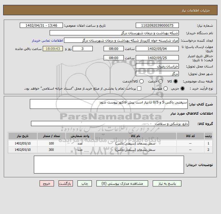 نام دستگاه خریدار:شبکه بهداشت و درمان شهرستان درگز