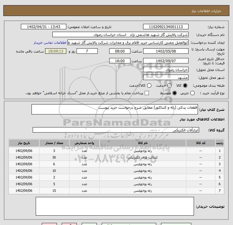نام دستگاه خریدار:شرکت پالایش گاز شهید هاشمی نژاد استان خراسان رضوی