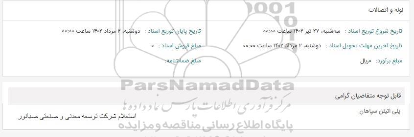 استعلام شرکت توسعه معدنی و صنعتی صبانور