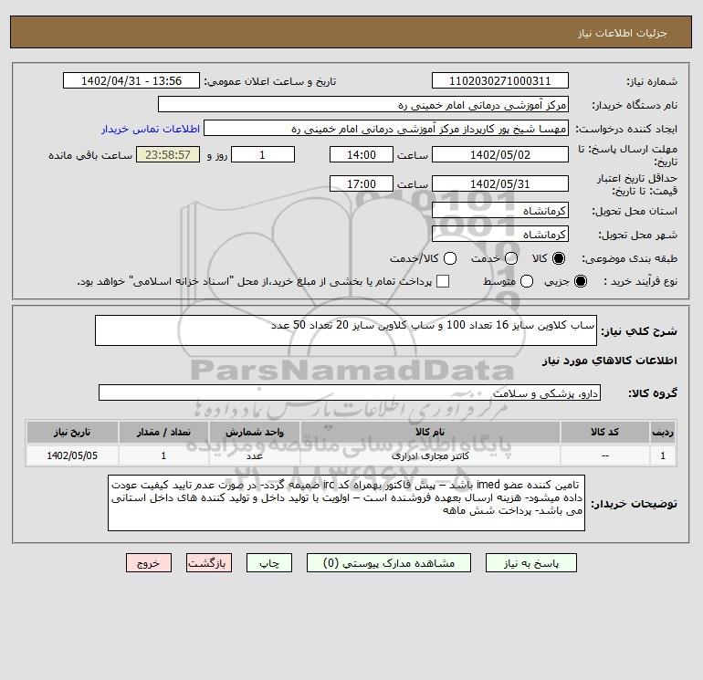 | 1 | -- | کاتتر مجاری ادراری | عدد | 1 | 1402/05/05 |