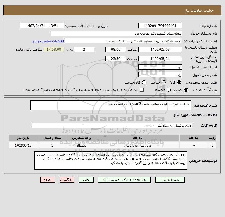 نام دستگاه خریدار:بیمارستان شهیددکتررهنمون یزد