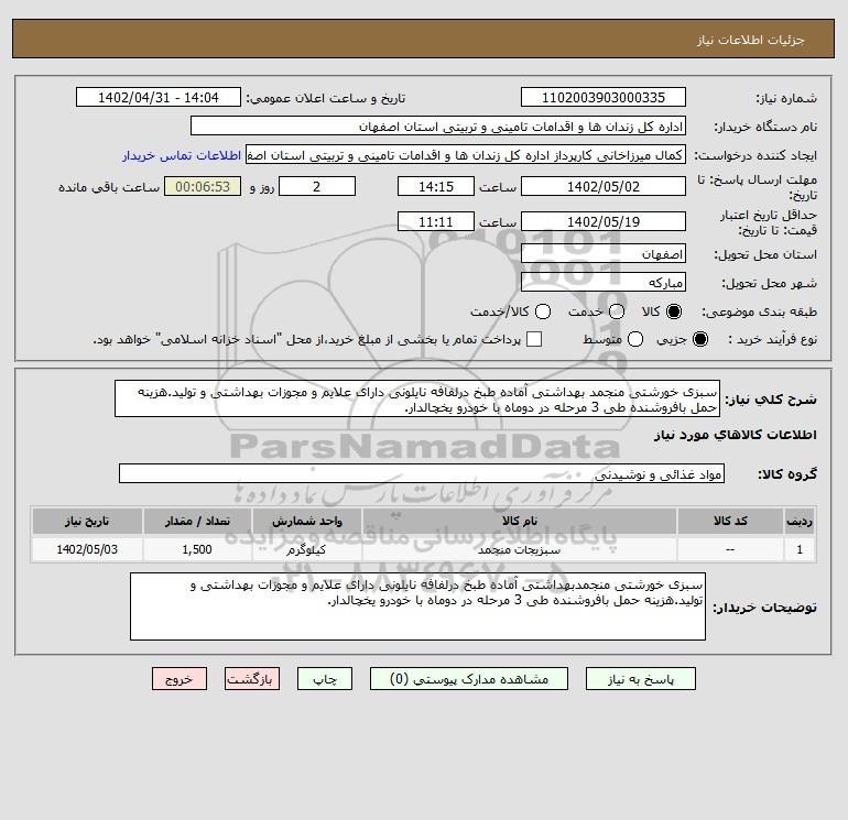 نام دستگاه خریدار:اداره کل زندان ها و اقدامات تامینی و تربیتی استان اصفهان