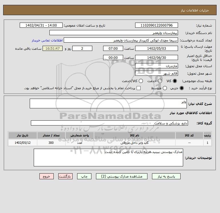 نام دستگاه خریدار:بیمارستان ولیعصر