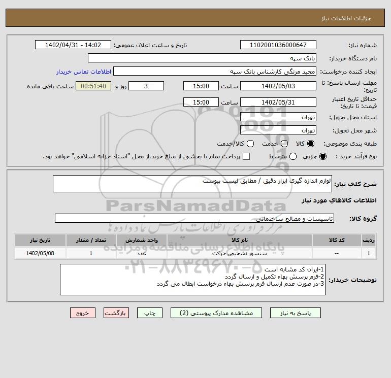 شرح کلی نیاز: لوازم اندازه گیری ابزار دقیق / مطابق لیست پیوست
