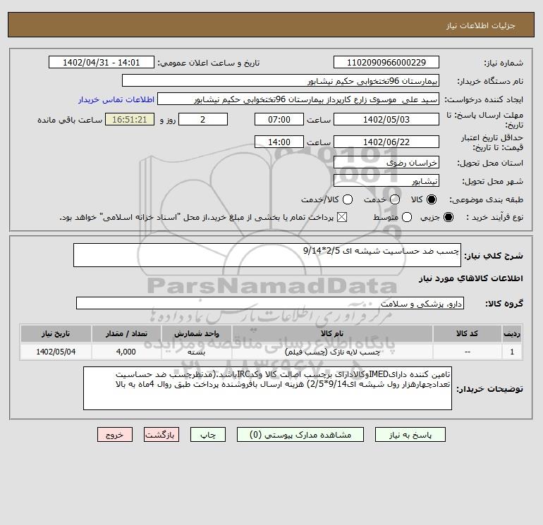نام دستگاه خریدار:بیمارستان 96تختخوابی حکیم نیشابور