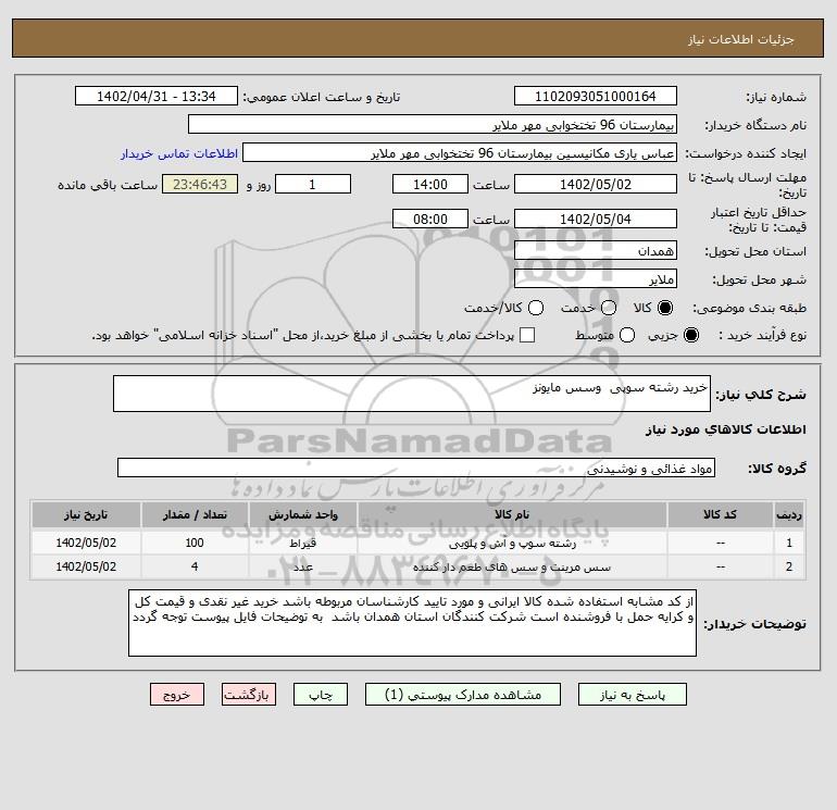 شرح کلی نیاز: خرید رشته سوپی وسس مایونز
