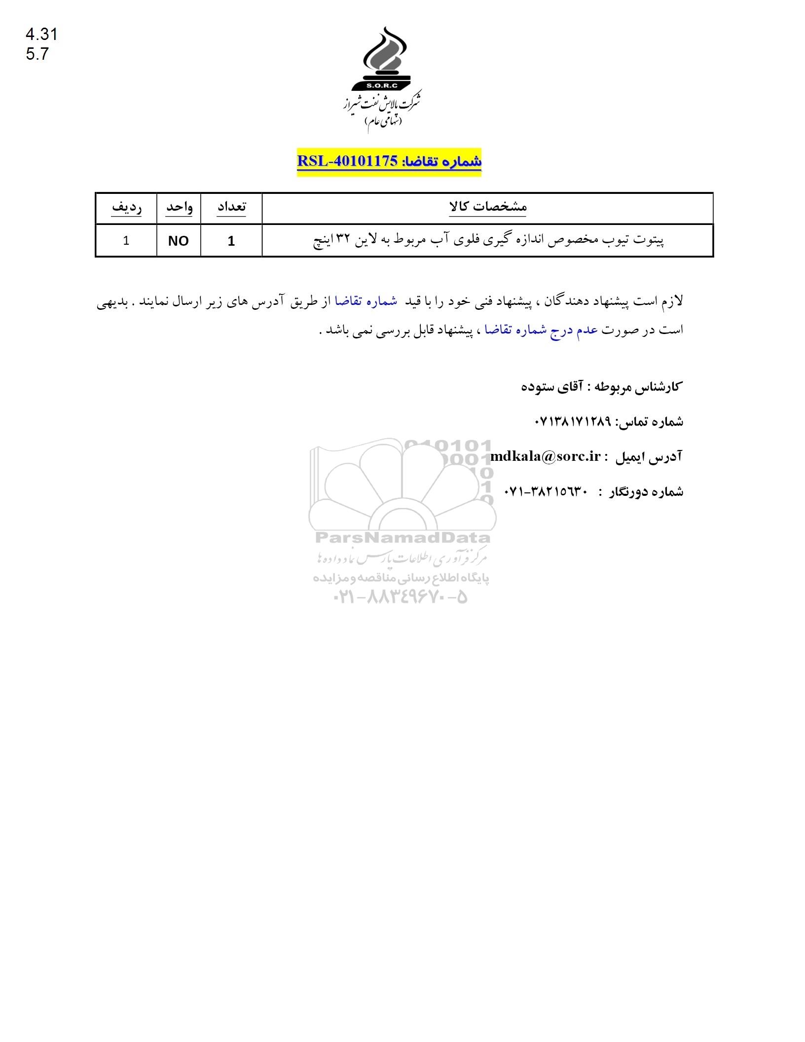 برای شرکت در مناقصه حتما از تصویر آگهی در سایت پارس نماد داده ها استفاده نمایید