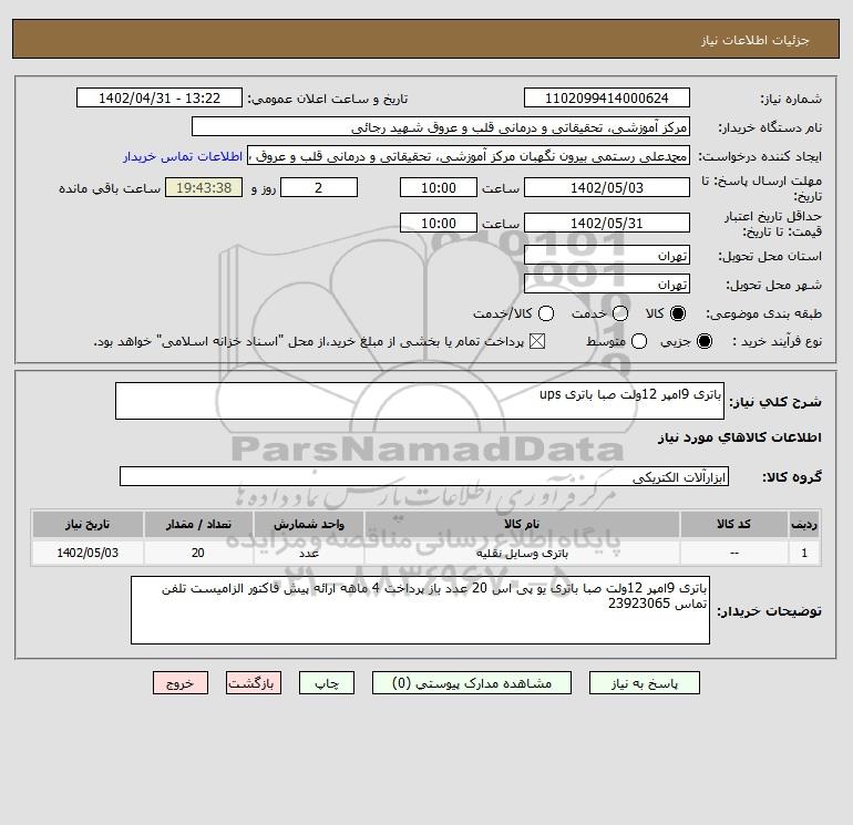 | 1 | -- | باتری وسایل نقلیه | عدد | 20 | 1402/05/03 |
