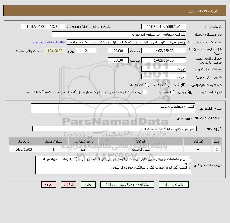 شرح کلی نیاز: کیس و متعلقات و پرینتر