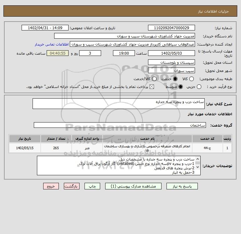 شرح کلی نیاز: ساخت درب و پنجره سه جداره