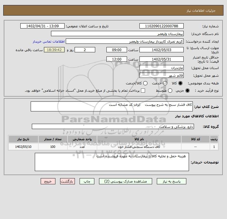 نام دستگاه خریدار:بیمارستان ولیعصر