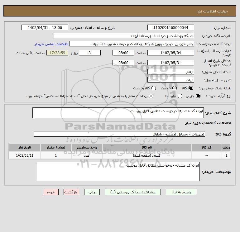 شرح کلی نیاز: ایران کد مشابه -درخواست مطابق فایل پیوست