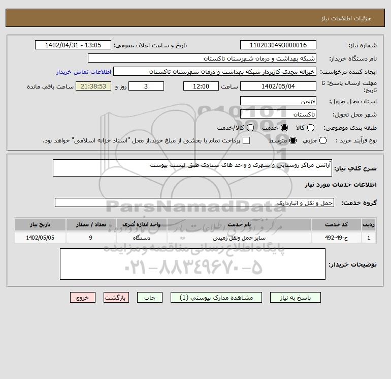 نام دستگاه خریدار:شبکه بهداشت و درمان شهرستان تاکستان