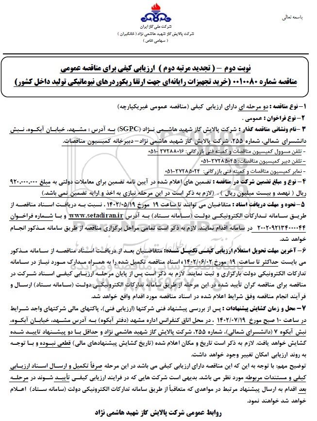 تجدید مرتبه دوم ارزیابی کیفی مناقصه خرید تجهیزات رایانه ای جهت ارتقا ریکودرهای نیوماتیکی تولید داخل کشور - نوبت دوم, تجدید مرتبه دوم ارزیابی کیفی مناقصه خرید تجهیزات رایانه ای جهت ارتقا ریکودرهای نیوماتیکی تولید داخل کشور - نوبت دوم