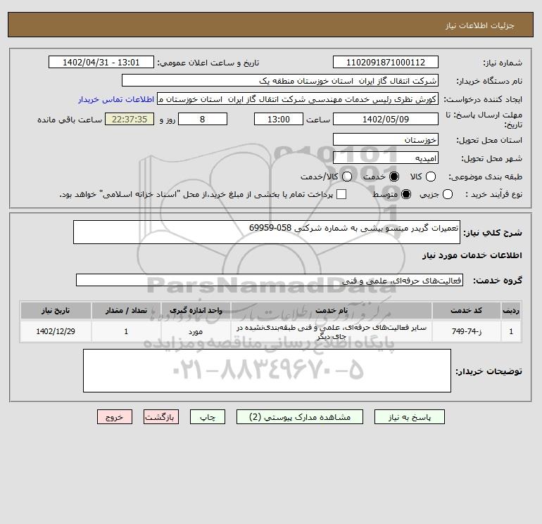 شرح کلی نیاز: تعمیرات گریدر میتسو بیشی به شماره شرکتی 058-69959