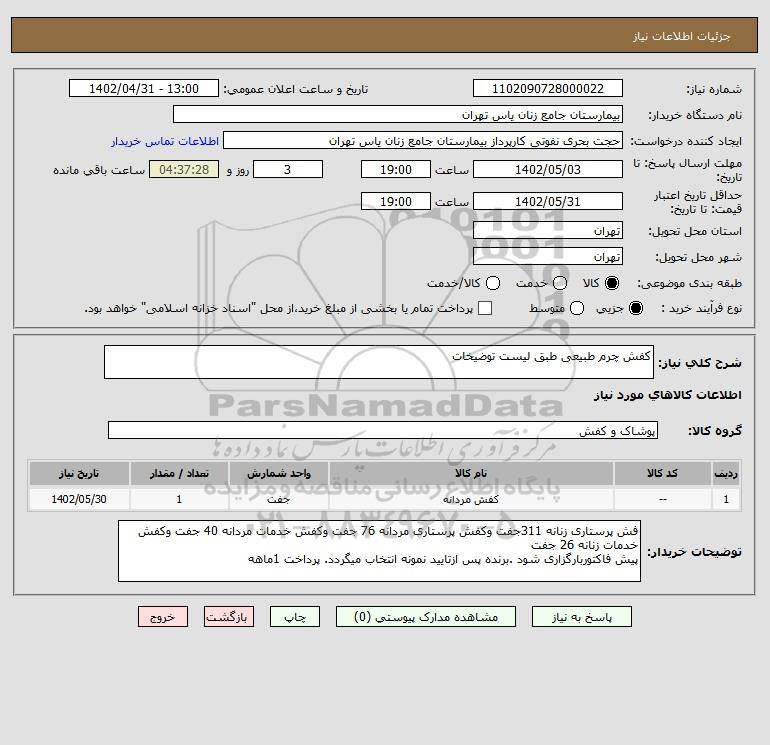 شرح کلی نیاز: کفش چرم طبیعی طبق لیست توضیخات