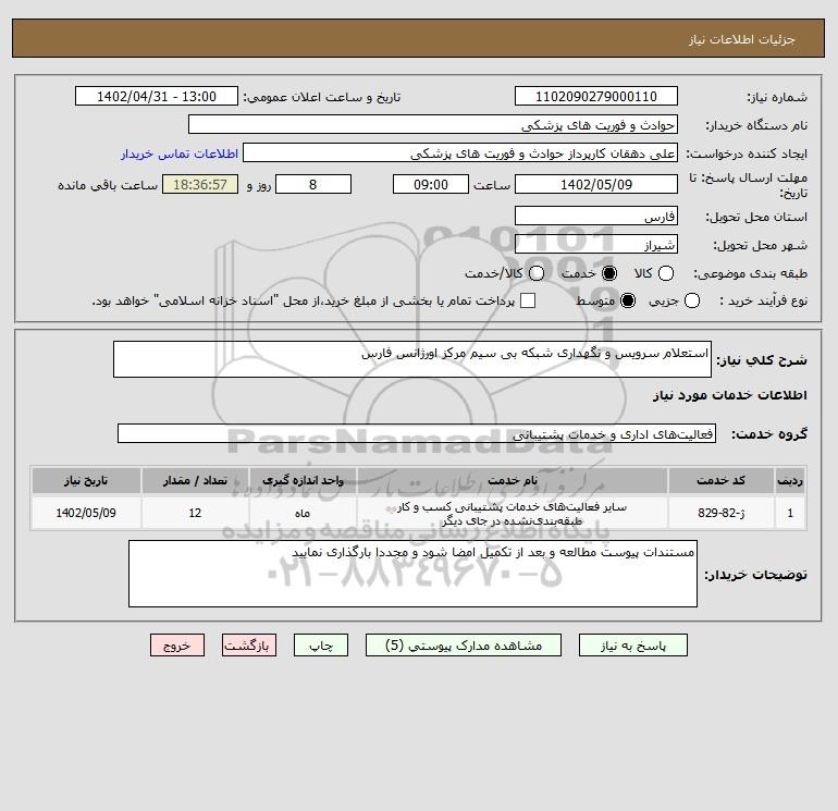 شرح کلی نیاز: استعلام سرویس و نگهداری شبکه بی سیم مرکز اورژانس فارس