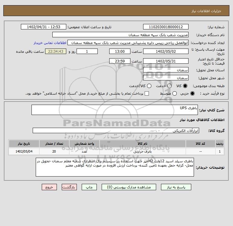 شرح کلی نیاز: باطری UPS
