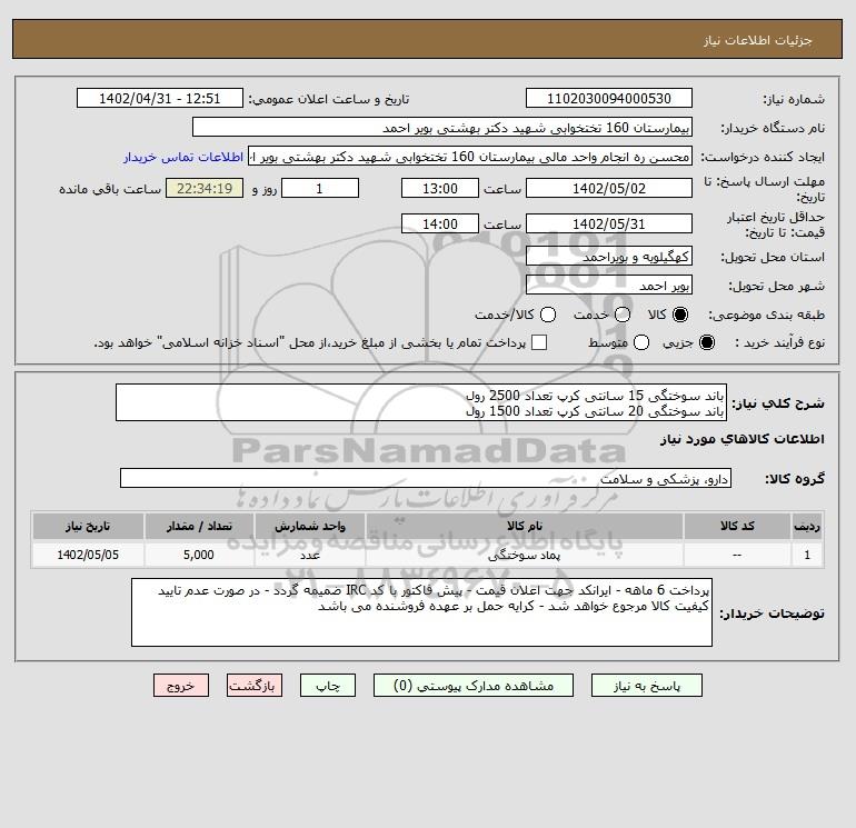 استعلام باند سوختگی 15 سانتی کرپ تعداد 2500 رول باند سوختگی 20 سانتی کرپ تعداد 1500 رول, استعلام باند سوختگی 15 سانتی کرپ تعداد 2500 رول باند سوختگی 20 سانتی کرپ تعداد 1500 رول