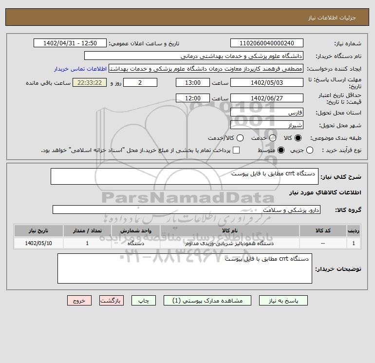 توضیحات خریدار: دستگاه crrt مطابق با فایل پیوست