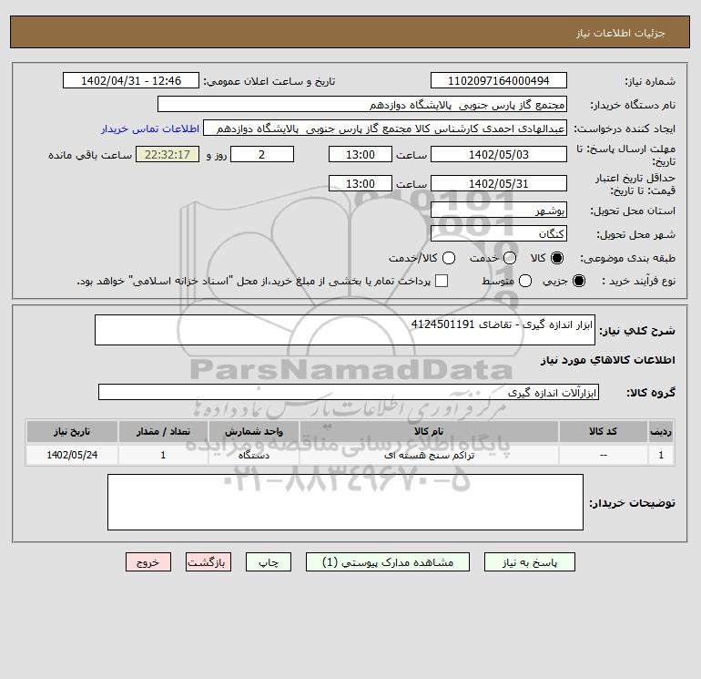 شرح کلی نیاز: ابزار اندازه گیری - تقاضای 4124501191