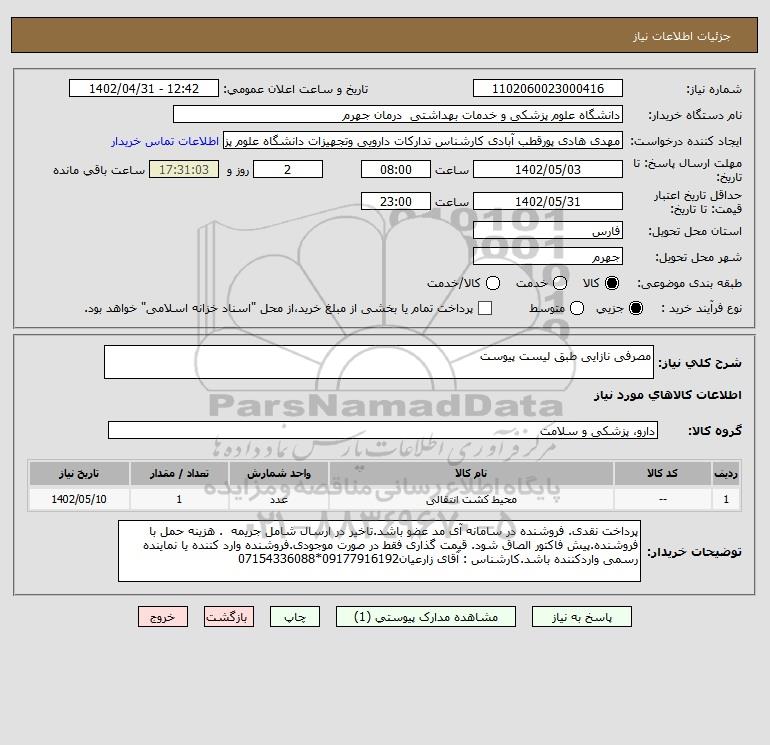 شرح کلی نیاز: مصرفی نازایی طبق لیست پیوست