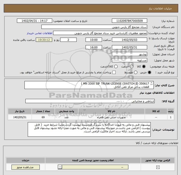 | 1 | -- | تجهیزات اصلی تلفن همراه | عدد | 69 | 1402/05/31 |