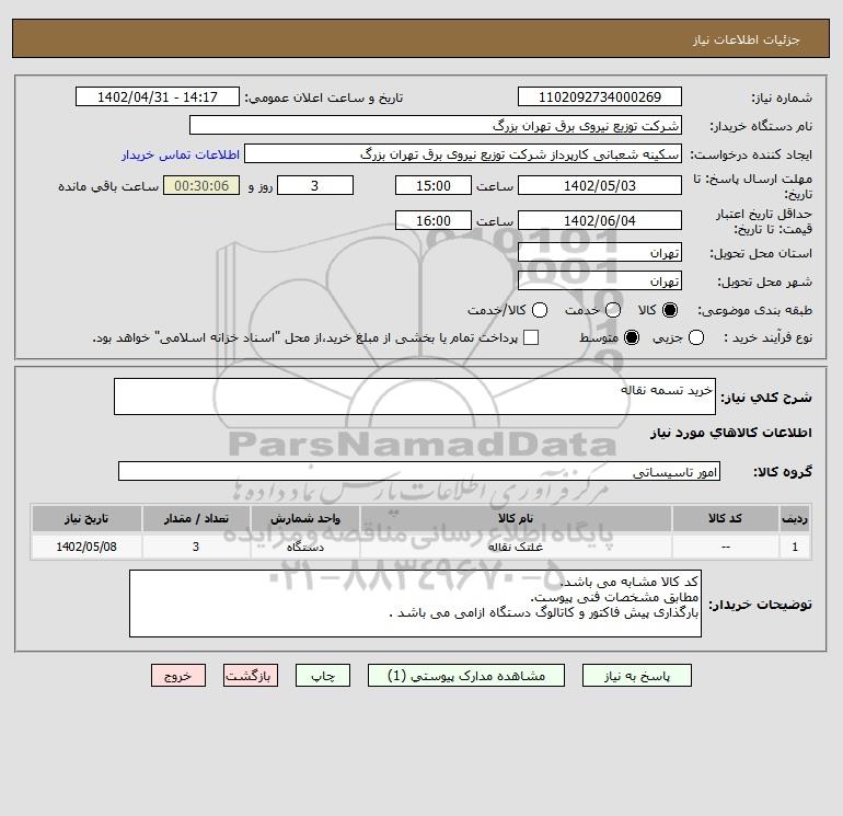 نام دستگاه خریدار:شرکت توزیع نیروی برق تهران بزرگ