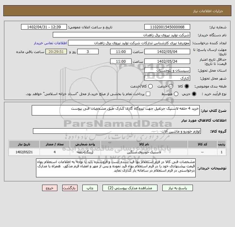 نام دستگاه خریدار:شرکت تولید نیروی برق زاهدان