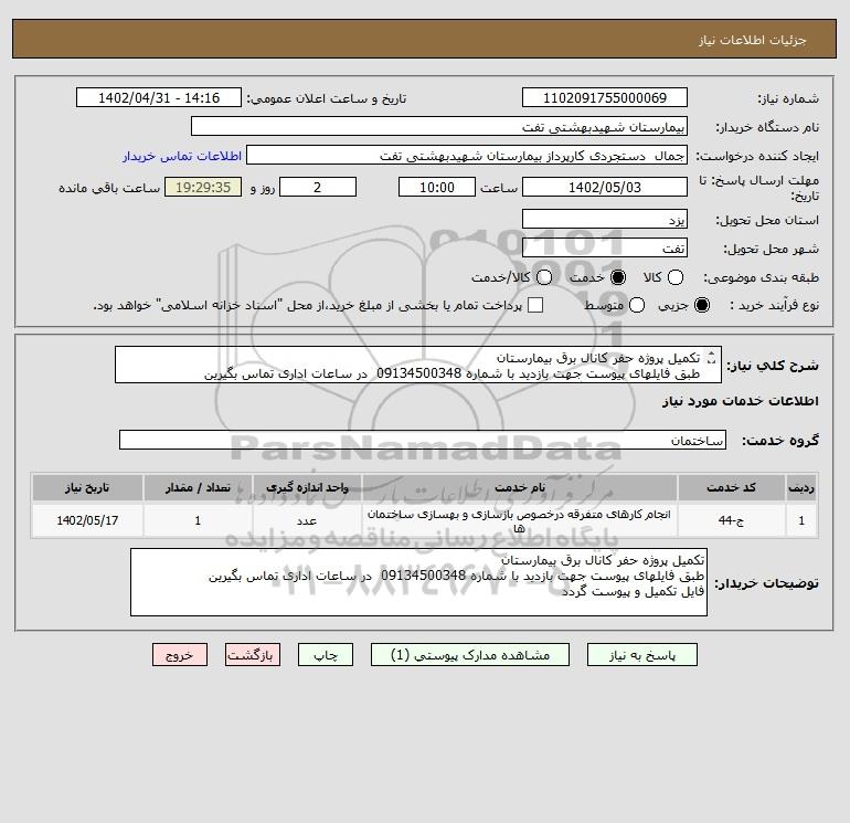 توضیحات خریدار:تکمیل پروژه حفر کانال برق بیمارستان