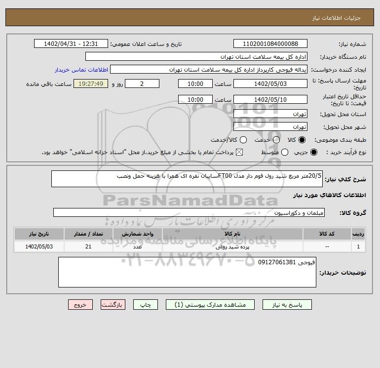 نام دستگاه خریدار:اداره کل بیمه سلامت استان تهران