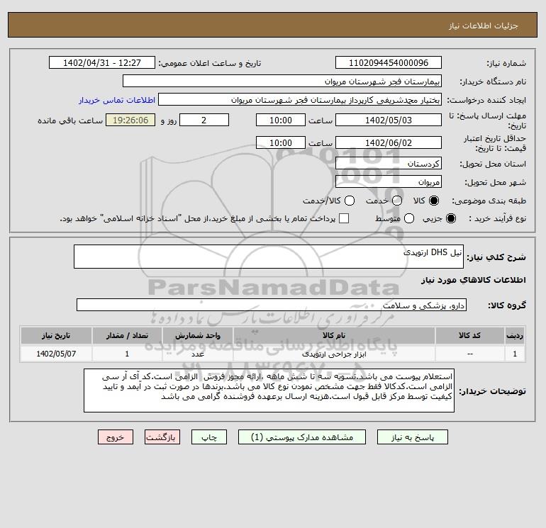 شرح کلی نیاز: نیل DHS ارتوپدی