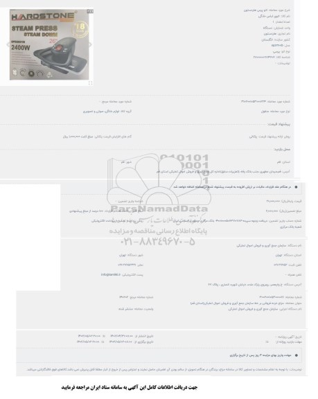 📞 برای دریافت اطلاعات بیشتر در خصوص، حراج، حراجی، فروش اقلام مازاد، واگذاری تجهیزات، فروش اموال مازاد، فروش دستگاههای دست دوم، فروش ماشینآلات کارکرده، مزایده عمومی، مزایده آنلاین، خرید به ارزانترین قیمت و فروش با بالاترین قیمت لطفاً با سامانه مناقصات و مزایدات ایران پارس نماد دادهها به شماره 88349670 تماس حاصل فرمایید.
