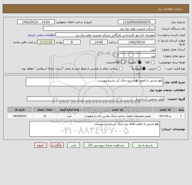 نام دستگاه خریدار:شرکت مدیریت تولید برق یزد