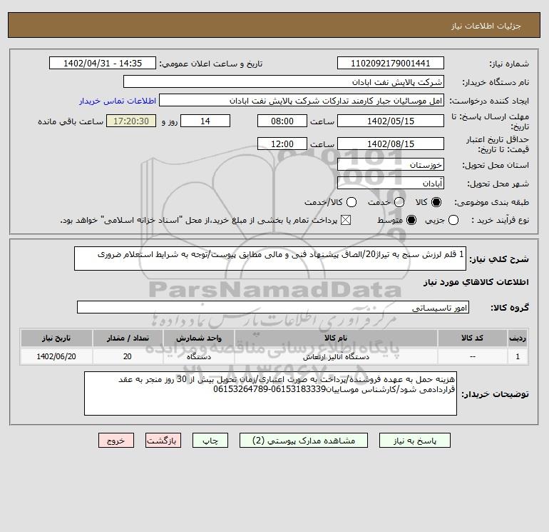 شرح کلی نیاز: 1 قلم لرزش سنج به تیراژ20/الصاق پیشنهاد فنی و مالی مطابق پیوست/توجه به شرایط استعلام ضروری